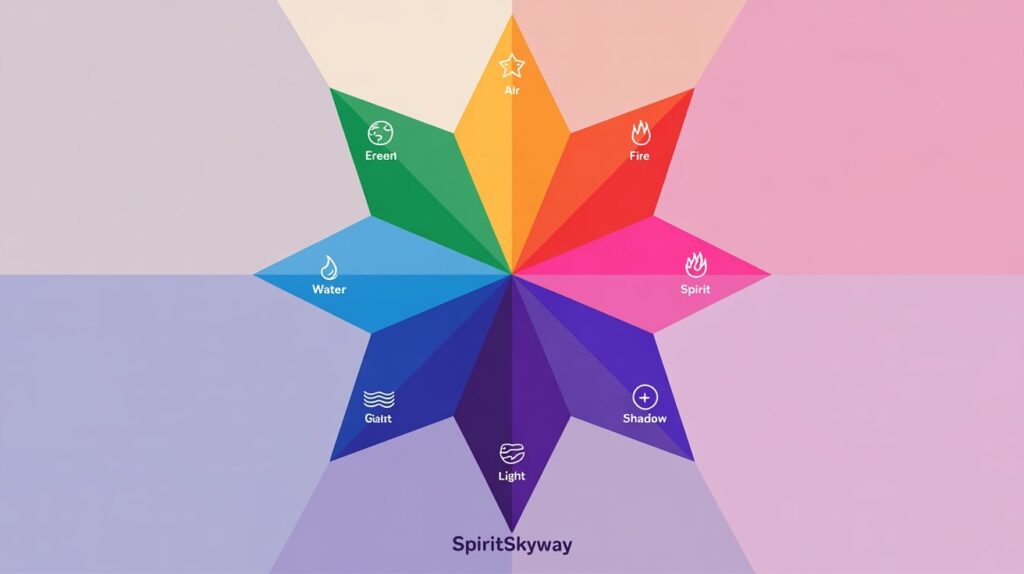 Earth, Air, Fire, Water, Spirit, Light, and Shadow—each with unique spiritual meaning.